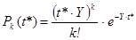 1. Вероятность поступления менее k вызовов за промежуток времени [0, t*): Pk (t*), где t*= 0,5; 1,0; 1,5; 2,0; вычислим по формуле:
