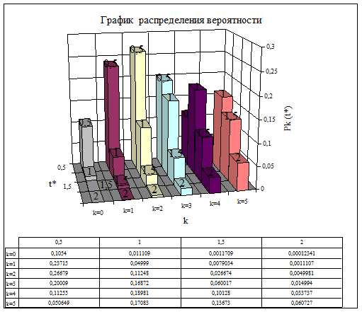 1. Рассчитать вероятности поступления менее k вызовов за промежуток времени [0, t*): Pk (t*), где t*= 0,5; 1,0; 1,5; 2,0.