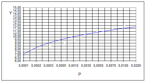 3. Построить зависимость величины потерь Ev , v (Y) от интенсивности поступающей нагрузки при фиксированном значении числа линий в направлении к УСС. Диапазон изменения величины потерь принять от 0,0001 до 0,2 (соответствующим выбором Y). Результаты представить в виде таблицы и графика Р =f(Y) при v = const.