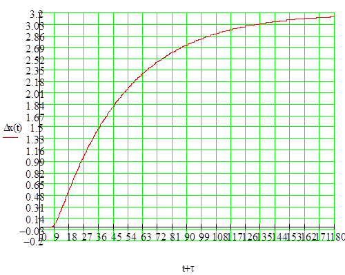 Рисунок 8. - Графік перехідного процесу регулювання в АСР (налаштування регулятора знайденi за методом Кона)