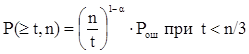 3) Распределение вероятности возникновения ошибок кратности t и более на длине n.