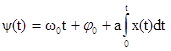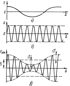 Амплитудная модуляция состоит в пропорциональном первичному сигналу x(t) изменении амплитуды переносчика