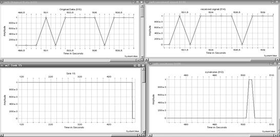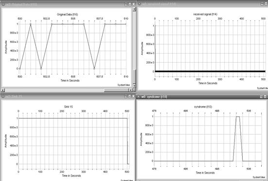 На рисунке 10 представлены входной и выходной сигналы кодера, а также исправляющая комбинация к.
