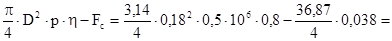 Fс - усилие сопротивления возвратной пружины в крайнем рабочем положении поршня, Н: