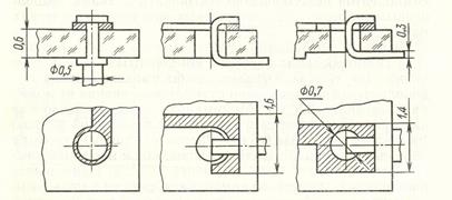 Круглые отверстия в межслойной изоляции, служащие для контакта между проводниками различных уровней, должны иметь диаметр не менее 0,6 мм. Квадратные отверстия выполняются с размером стороны не менее 0,5 мм. Между пленочными элементами, находящимися в разных слоях при многослойной разводке, должно обеспечиваться расстояние не менее 0,2 мм.