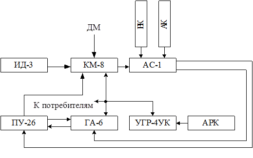 Кроме того, к курсовой системе в режимах МК и ГПК (исключая режим АК) постоянно подключены и получают сигналы потребители гиромагнитного курса.