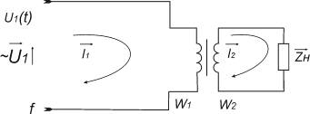 Считаем, вторичная обмотка разомкнута (нет нагрузки). На первичную действует U1 (t). В цепи возникает ток:
