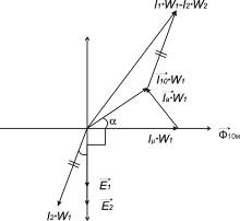 Для построения векторной диаграммы за точку отправления возьмем направление вектора магнитного потока