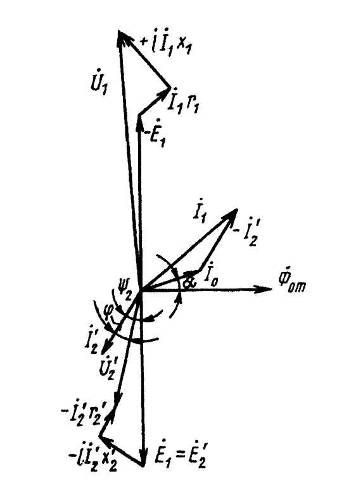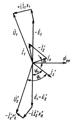 Рабочий режим трансформатора: векторная диаграмма при нагрузке индуктивного характера