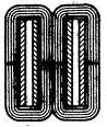 В трансформаторе броневого типа первичная и вторичная обмотки помещаются на среднем стержне сердечника. Таким образом, в этом трансформаторе обмотки частично охватываются (бронируются) ярмом. Броневыми наиболее часто выолняются трансформаторы малой мощности. Броневой трансформатор обладает рядом конструктивных достоинств: наличием только одной катушки с обмотками вместо двух при стержневом сердечнике; более высоким коэффициентом заполнения окна сердечника обмоточным проводом; частичной защитой обмотки ярмом сердечника от механических повреждений.