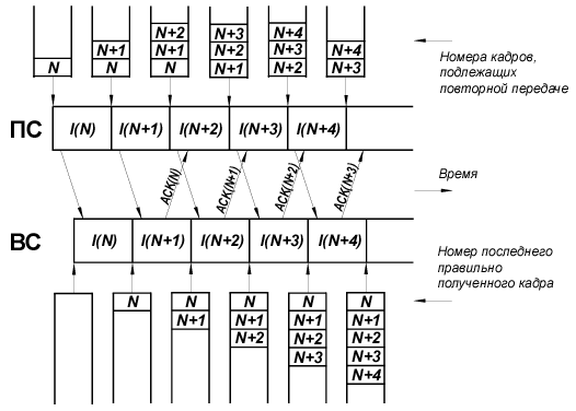 -кадр, не содержащий ошибок, ПС может послать следующий