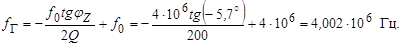 Фаза средней крутизны в автогенераторе jS = 5,7°. Найти частоту генерируемых колебаний, если добротность колебательного контура Q = 100, резонансная частота колебательного контура ¦0 = 4 МГц, фазовый сдвиг по цепи обратной связи jОС = 0.