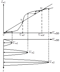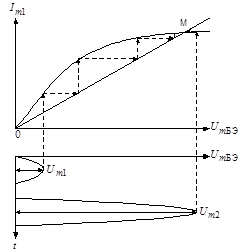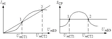 На рисунке 4 построены колебательная характеристика Im 1 (Um БЭ ) и прямая обратной связи, проходящая через начало координат под углом a, величина которого определяется значением S СР для стационарного режима: