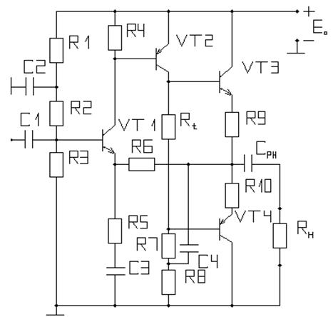 . Она предназначена для создания начального смещения на базах транзисторов выходного каскада. В процессе нагрева их параметры существенно изменяются, что влечет за собой изменение режимов и нарушение работы всей схемы. Цепь