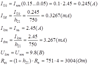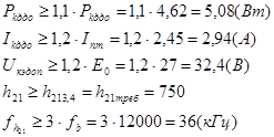 Для проведения последующих расчетов из параметров выбранного транзистора определяем: