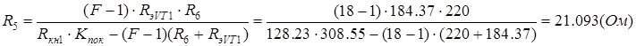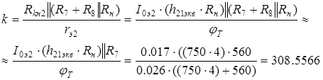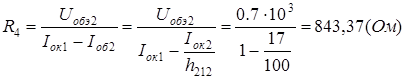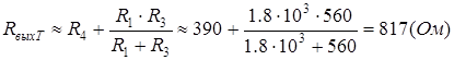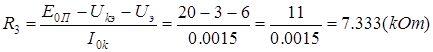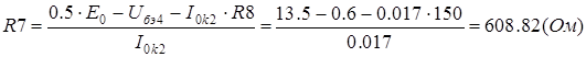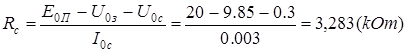 определяется исходя из падания напряжения на нем и тока, равного сумме токов делителя в цепи базы и эмиттера.