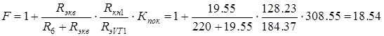 а) на введение ООС запас численно равен глубине обратной связи F, обеспечивающей снижение нелинейных искажений оконечного каскада усилителя до установленного заданием предела: