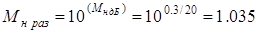 б) запас на регулировку тембра, определяемый коэффициентом коррекции частотной характеристики: