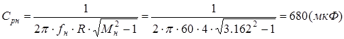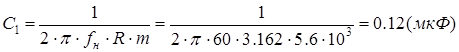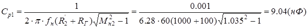 Зная выходное сопротивление КПУ1 можем рассчитать емкость