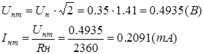 1.Определяем амплитуду напряжения и тока на нагрузке: