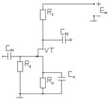 На рис 2.4. представлена схема каскада предварительного усиления на биполярном транзисторе по схеме с общим эмиттером.