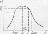 В действительности, частотная характеристика может, например, иметь вид, показанный на рис. 2. Избирательность количественно выражается отношением коэффициента усиления на какой-либо частоте, лежащей на границах или за пределами полосы пропускания, к коэффициенту усиления на опорной частоте, которая обычно выбирается в середине полосы пропускания.