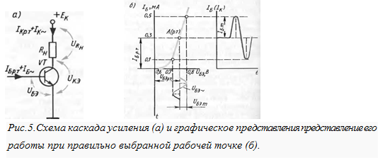 Основным требованием, предъявляемым к каскаду усиления, является воспроизведение формы входного сигнала на выходе, т. е. его минимальные нелинейные искажения. Выполнение этого требования обеспечивается подачей определенных напряжений и токов на выводы усилительного элемента. Транзистор во время ожидания входного сигнала находится в режиме молчания, или покоя.