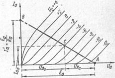 Динамическую анодную, или нагрузочную, характеристику усилительной лампы строят следующим образом. На осях координат семейства статическиханодных характеристик обозначаются две точки А и В (рис. 8). Точка А соответствует анодному напряжению