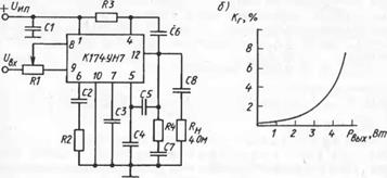 Типовая схема включения интегральной микросхемы К174УН7 показана на рис. 12, а. Входной сигнал поступает на вывод 8 микросхемы с движка потенциометра