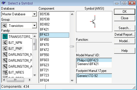 Прежде чем проводить анализы требуется проверить работоспособность схемы на импортных элементах, т.е. проверить соответствие параметров в полученной схеме.