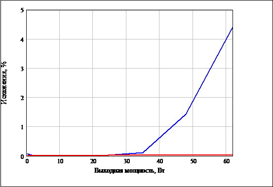 Рис.14.Зависимость нелинейных искажений от выходной мощности