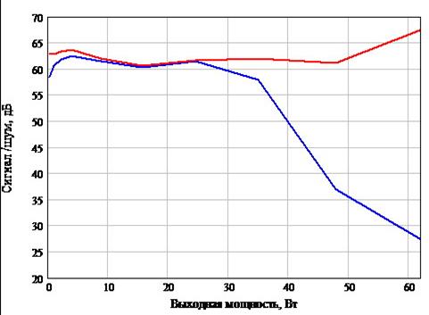 Рис.16.Зависимость сигнал/шум от выходной мощности