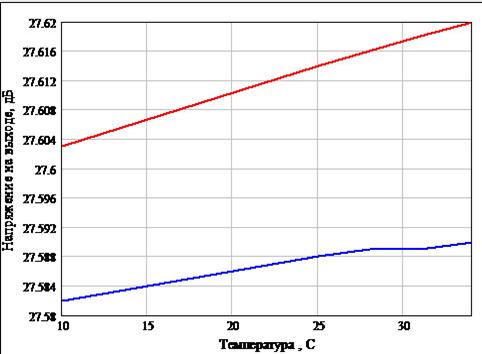Вывод: неравномерность АЧХ линейная вплоть до частоты 40КГц. Схема является температурно-устойчивой.