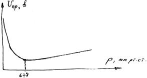 Заметив что с дальнейшим уменьшением давления (ниже 6-7 мм рт. ст.), т.е. с повышением высоты более, чем 30-40 км, электрическая прочность возрастает и подчиняется закону Пашена (рис. 4).