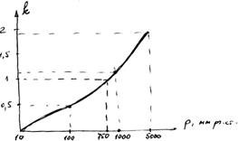 Уменьшение конвективной теплопередачи определяется из графика (рис. 5), где величина коэффициента k представляет собой отношение коэффициентов теплоотдачи при заданном и нормальном давлениях: