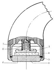 Основание 1 крепится к корпусу головки с помощью накидной гайки 5. Для того чтобы ультразвуковая волна проходила через основание (резонатор) без ослабления, толщина его должна составлять целое число полуволн (обычно, одну или две).