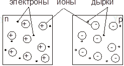 Пусть внешнее напряжение на переходе отсутствует. Так как носители зарядов в каждом полупроводнике совершают беспорядочное тепловое движение, то происходит их диффузия из одного полупроводника в другой. Из полупроводника n - типа в полупроводник р - типа диффундируют электроны, а в обратном направлении из полупроводника р - типа в полупроводник n - типа диффундируют дырки (рис.4, б). В результате диффузии носителей зарядов по обе стороны границы раздела двух полупроводников с различным типом электропроводности создаются объемные заряды различных знаков. В области n возникает положительный объемный заряд, который образован положительно заряженными атомами донорной примеси. Подобно этому в области р возникает отрицательный объемный заряд, образованный отрицательно заряженными атомами акцепторной примеси.