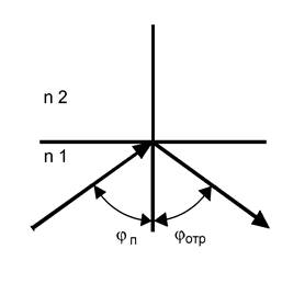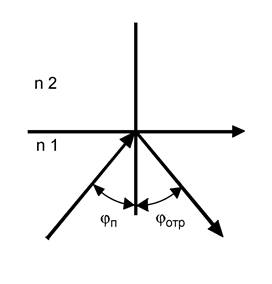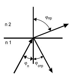 При падении луча на границу раздела двух сред в общем случае появляются преломленная и отраженная волны. Согласно закону Снеллиуса угол падения φп связан с углами отражения jотр и преломления jпр соотношением: