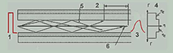 то после многократного повторения акта отражения - преломления на границе сердцевина - оболочка вся энергия луча перейдет в оболочку и удержится в ней, если выполняется условие полного внутреннего отражения на внешней границе оболочки. Эта часть излучения представляет собой вытекающие или оболочечные лучи (моды). Если условие не выполняется, то лучи выходят и из оболочки - это излучаемые моды. При больших длинах распространения вытекающие лучи поглощаются в оболочке (менее прозрачной, чем сердечник) и в процессе светопередачи по волокну участвуют только внутриапертурные направляемые лучи.