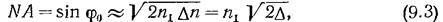 называется числовой апертурой и является важной характеристикой световода; именно этот параметр входит во многие расчетные формулы. Излучение, заключенное внутри конуса с углом при вершине