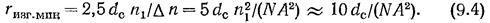 - диаметр сердцевины), получаем, что снижение числовой апертуры до 90% от своего, первоначального значения произойдет при