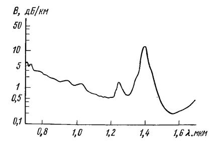 Рис. 9.5. Типичный спектр поглощения кварцевого световода