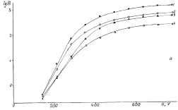 Типова вольт – яркісна характеристика для порошкового ЕЛІ змінного струму приведена на рис.1.1. Як видно, яскравість збільшується із зростанням частоти і напруги приблизно пропорційно U3. Проте в багатьох матеріалах збільшення частоти вище 10 кГц дає незначне збільшення яскравості, але веде до надмірних діелектричних втрат. Разом з розробкою ЕЛІ змінного струму ведуться дослідження, направлені на створення індикаторів постійного струму на ZnS-люминофорах.