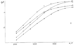 Порівняння ВЯХ електролюмінісцентних структур (мал. 1.2,а) свідчить про те, що при близьких значеннях порогової напруги (при яскравості В = 1cd/m2) максимальна яскравість свічення електролюмінісцентної структури на шорсткій підкладці в області насичення ВЯХ в два рази більше відповідного значення яскравості структури на ”гладкій” підкладці на частоті 5kHz-1445 і 720cd/m2 і більш ніж в два рази на частоті 1 kHz-560 і 246 cd/m2. ВЯХ електролюмінісцентної структури на шорсткій підкладці має також вищу крутизну в порівнянні із структурою на ”гладкій” підкладці.