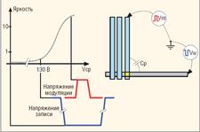 Воно прикладається методом мультиплексування між електродами стовпців на одній стороні і електродами рядків на іншій стороні люмінофора (див. рисю2.3). Кожного разу, коли напруга перевищує поріг номінальної напруги близько 200 В, генерується короткий імпульс світла з постійною часу загасання менш ніж 1 мс, і таким чином яскравість випромінюваного світла приблизно пропорційна частоті збудження.