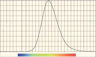 Рис 2.4. Спектр світлової віддачі люмінофора (ZnS:Mn) електролюмінесцентного дисплея[6].