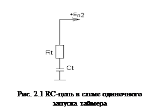 Чтобы сформировать требуемую длительность импульса, следует подобрать параметры Rt и Ct в схеме с таймером (см. рис. 1.1). В момент запуска таймера триггер переходит в состояние логической единицы. В результате чего, транзистор начинает работать в режиме отсечки, его переход коллектор-эммитер повышается до нескольких мОм. Считаем, что у нас в этом месте разрыв и рассматриваем простую RC-цепь, конденсатор которой должен зарядиться до напряжения 2/3*Eп2