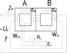 Приведенная электромагнитная схема хорошо объясняет принцип работы МУ, однако не работоспособна в практическом применении из-за трансформации энергии переменного тока в маломощном источнике управления.