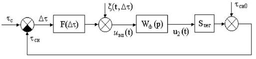 У зв'язку з імпульсним характером сигналу інформація про неузгодженість Dt ( середини ехосигналу щодо стику селекторних імпульсів) утвориться в автоселекторі в дискретні моменти часу, що відстоять один від одного на період повторення зондувальних імпульсів. Тому, часовий автоселектор є дискретною (імпульсною) системою радіоавтоматики. Однак, якщо частота повторення зондувальних імпульсів велика в порівнянні з вищою частотою смуги пропущення автоселектора, що часто практикуєься, то можна вважати автоселектор безупинною системою. У такому припущенні побудуємо структурну схему автоселектора.