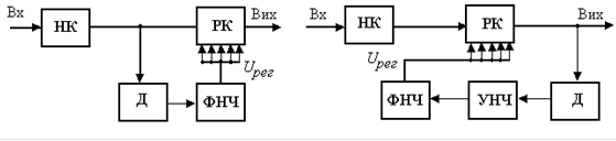 У системі АРП "назад" вихідна напруга після посилення в нерегульованих і регульованих каскадах, детектування і наступного посилення надходить через фільтр нижніх частот назад для регулювання коефіцієнта підсилення попередніх (регульованих) каскадів. З ростом напруги UРЕГ коефіцієнт підсилення зменшується. Це система зі зворотним зв'язком. Особливість її полягає в тому, що ефект регулювання досягається в ній за рахунок зміни параметра – коефіцієнта підсилення.